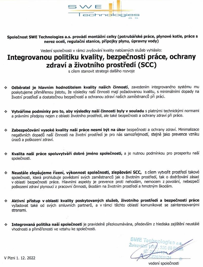 Firma vznikla v roce 1999 se sídlem v Úštěku 1. máje 6. Zaměstnanci firmy mají dlouholetou praxi na montážích nejen po celém území ČR, ale i v zahraničí. Z důvodu rozšiřování firmy se začala firma Pavel Dvořák od r. 2003 postupně transformovat na akciovou společnost SWE Technologies a.s. s jediným akcionářem.